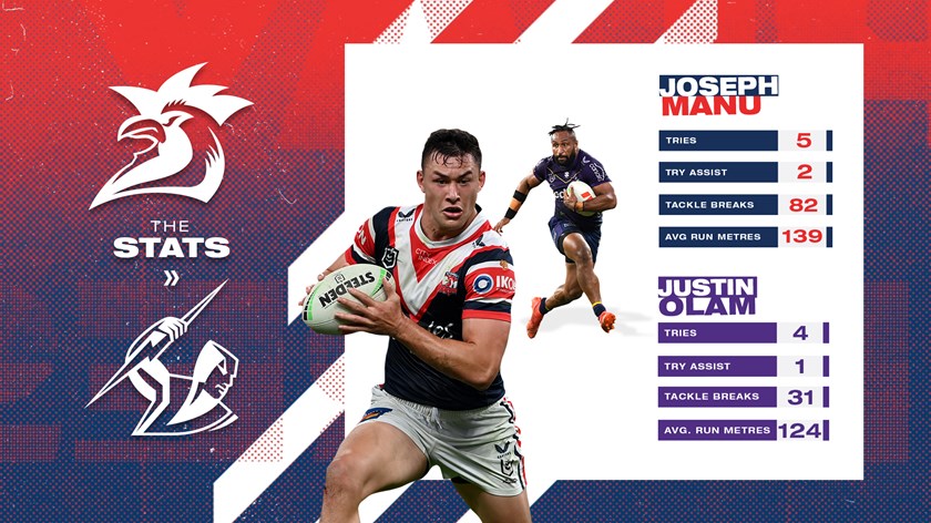 Fullback for Roosters is number 4 Joseph ManuFullback for Storm is number 1 Nick Meaney
