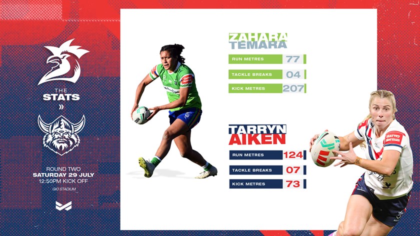 Five-Eighth for Raiders is number 6 Zahara TemaraFive-Eighth for Roosters is number 6 Tarryn Aiken