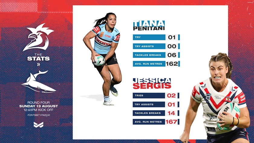 Centre for Sharks is number 3 Tiana PenitaniCentre for Roosters is number 3 Jessica Sergis