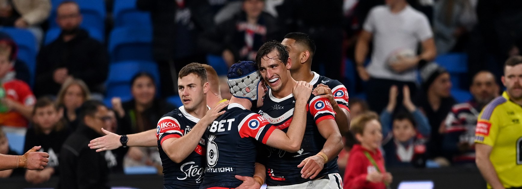 Terrell May picked up the scraps and made a dash upfield after Dylan Napa caused a handling error for the Dolphins in the 63rd minute. With the crowd behind them and momentum in attack, Hutchison once again took on the line - making his way straight through for consecutive tries. Suaalii made no mistake with the conversion, notching the Roosters to a 22-point lead.