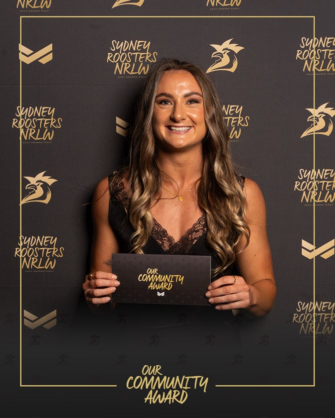 2023 Veronica White Medal nominee Brydie Parker has been awarded the Roosters Our Community Award for her unwavering commitment to community programs and initiatives.