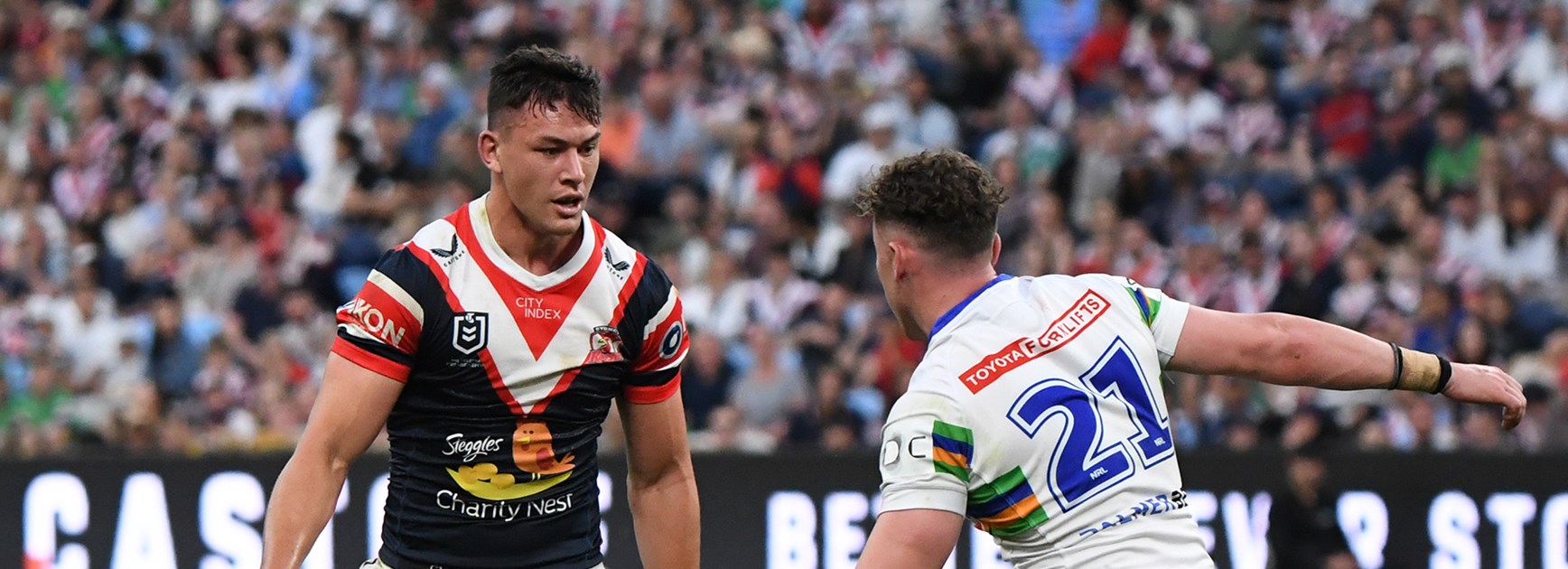 On the football front, the first points of the game came via a Roosters penalty goal taken by Luke Keary, but it was the departing Elliott Whitehead who scored the opening try, powering his way over the line.