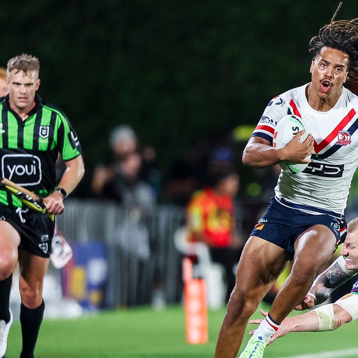 James Tedesco and Trent Robinson chat to the media after their Round 1 clash against the Broncos