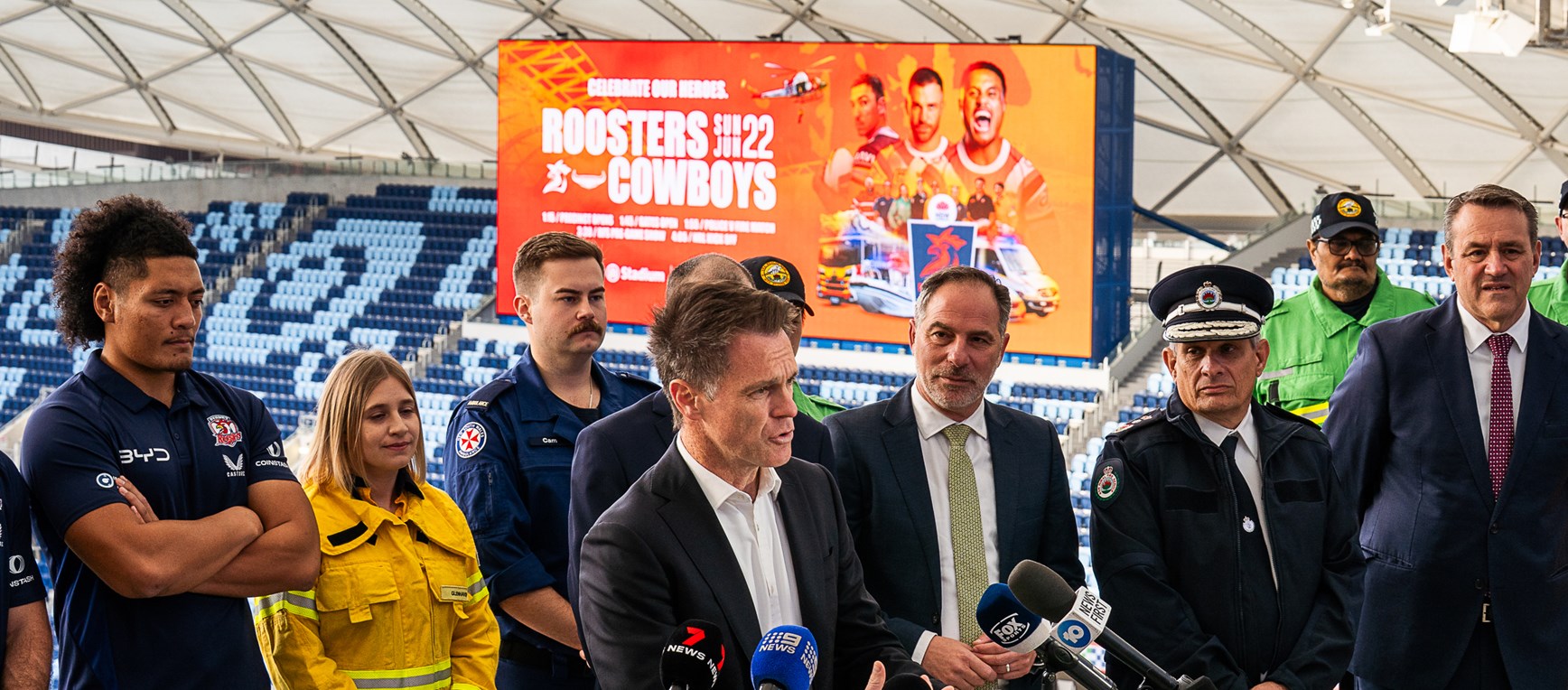 Imagery from the 2025 Emergency Service Round Launch at Allianz Stadium.