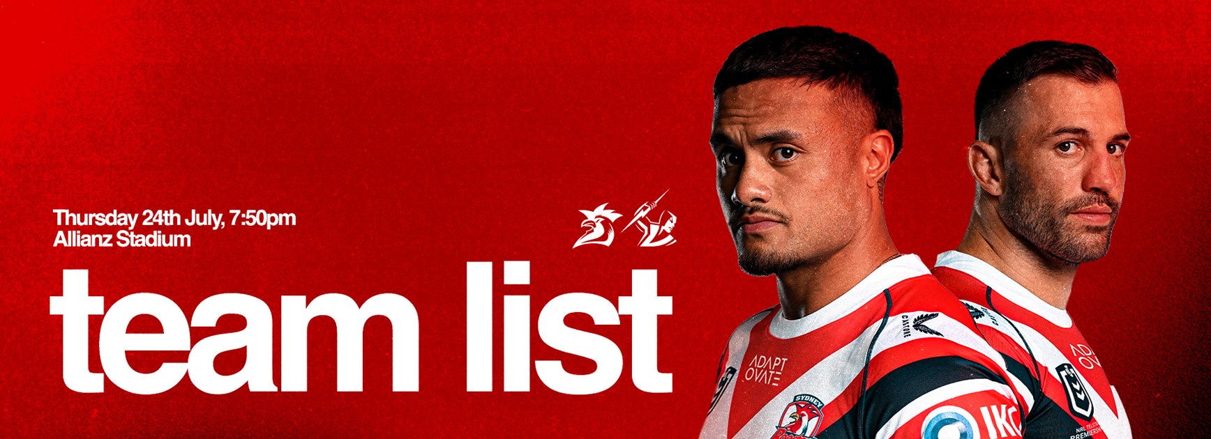 The Sydney Roosters are proud to announce the line up for the Round 21 clash against the Melbourne Storm at Allianz Stadium.