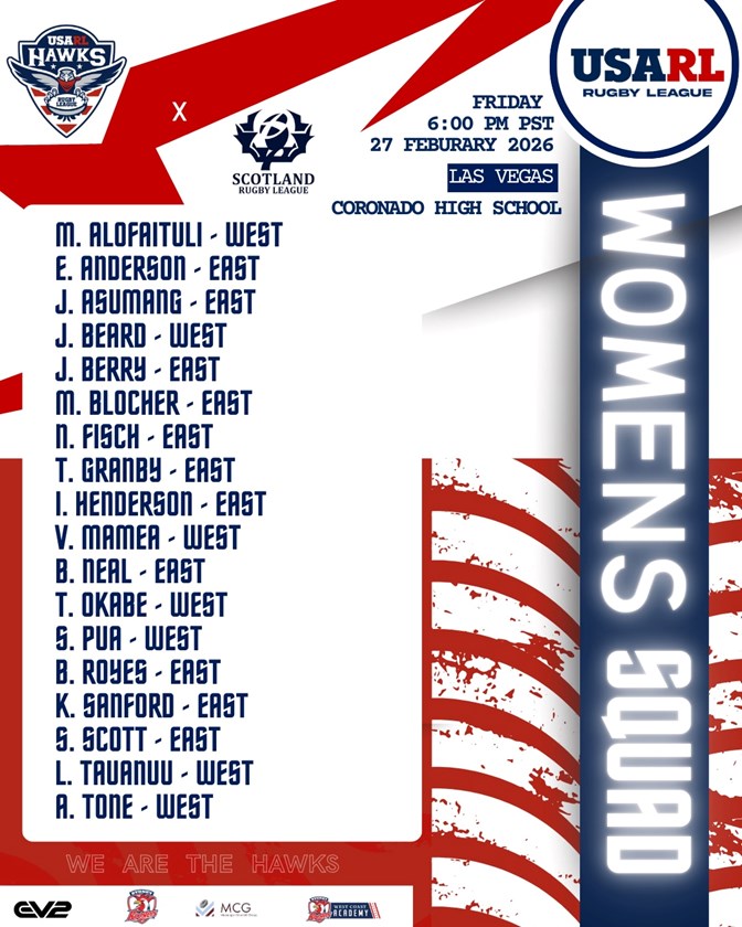 The LA Roosters also have four players - Maiah Alofaituli, Terree Okabe Sydney-Rae Pua and Afiogatagomailelagi Atene Tone - chosen in the USA Women’s team, who will also play Scotland in the international double-header.